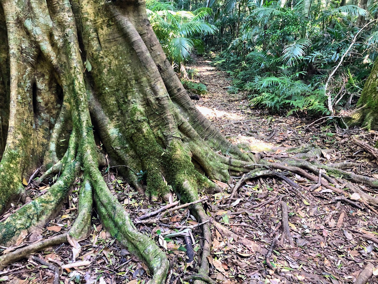 A number of short rainforest walks are accessible from The Gap, at the top of Bruxner Park Road. These include a 1.4km Rainforest Loop track, the 800m Bangalow Track, and an even shorter 240m Vincents track, which Yvonne suggests can all be combined into a 4.7km grade 3 loop walk over 1-1.5 hours where you may also see some of the historic tramway infrastructure from when the forest was used as a timber resource and logs were transported from the area to the sawmill and Coffs Harbour Jetty.
