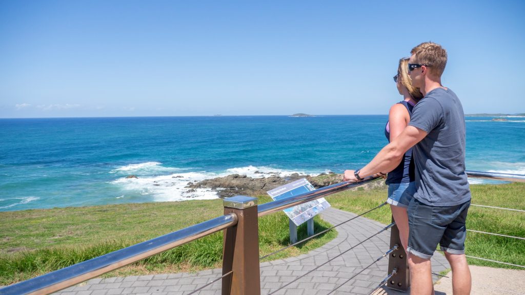 The name says it all. This is one of those stellar spots locals love showing off to visiting family and friends. Kangaroos lazing in the sun and miles of Moonee Beach to the south.With secluded Serenity Bay below and the phenomenal ocean and island views ahead. The vista of isolated headlands and beaches from here is Mother Nature at her finest.