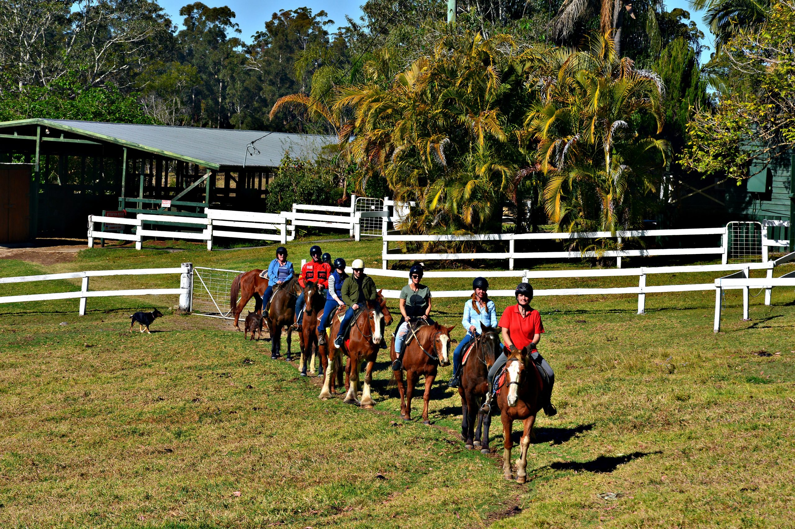 We offer one or two hour trail rides, birthday parties, kids and teenage saddle club, Holiday saddle club, pony rides for the little ones, tuition /lessons, stable management and horse training ,morning or afternoon rides with brekkie or bbq, ladies club and overnight ride to Bellingen pub. Agistment available and bunk house accommodation if you bring your own horse.
