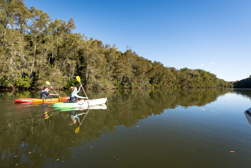 The Bonville Creek estuary meanders through Bongil Bongil National Park and flows into the sea at Sawtell. The name ‘bongil bongil’ means ‘a good place to stay a long time’. This is a fantastic location for kayaking or trying out your skill on a stand-up-paddle board.