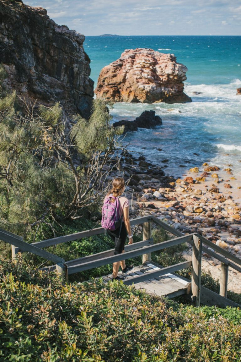 The trail up Muttonbird Island is sealed but steep. For those needing to catch their breath there is a bench halfway up that provides a superb view of the marina. As you walk along the track to the lookout at the top, on either side of the path you’ll notice open burrows. This is an important roosting and breeding site for the Wedge-tailed Shearwater. Signage along the way explains the lifecycle of these migratory birds. It is important to stay on the track as the burrows are extremely fragile and the plant cover provides little protection from cave-ins which can be disastrous for the birds.