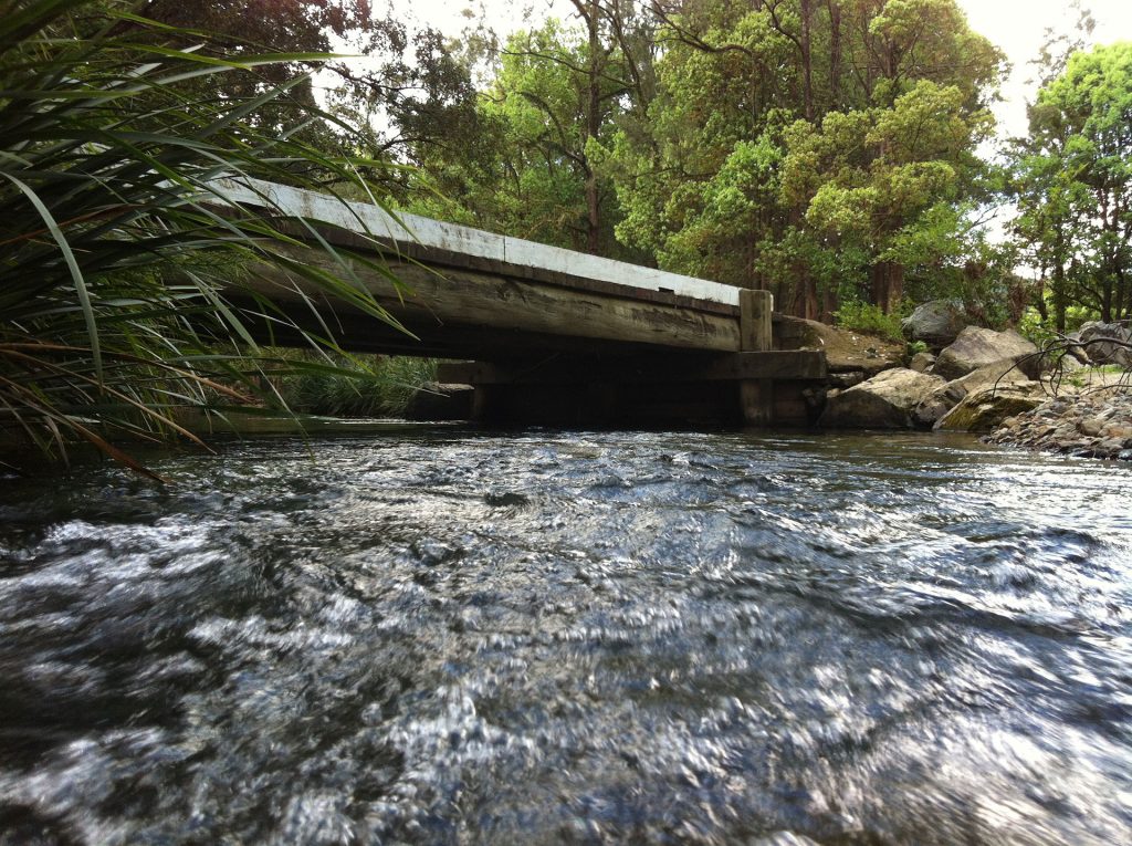 It is possible to navigate from Watkins Rd to Hartley’s Rd bridge, but the trip takes at least 2.5 hours with numerous log jams (these change with each flood so care should be taken and the trip should not be attempted when river is in flood).