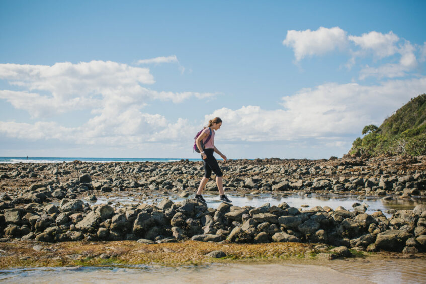 Please check the tides – walking along the beach is easiest at low tide. Areas that are best walked at low tide include creek crossings at Arrawarra and Moonee Creek and around rocks on Campbells Beach.